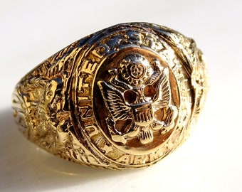 Us Army Mens Ring Gold Armed Forces Gold Ring Big Mens Gold Etsy